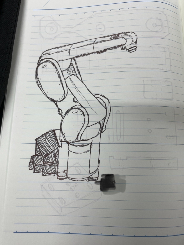 その後には、図面の読み方・書き方の入口として、多関節ロボットの模型を見ながらスケッチしてもらいました。