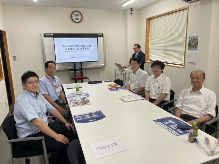 先日、弊社を会場に「新潟県高等学校教育研究会工業部会 電気・電子研究会」が行われました。 新潟県内の工業高校の先生方の勉強会なのですが、当番校の先生からのご依頼で、午前中は弊社の工場見学と午後はFA業に関するお話を聴いて頂きました。 工場見学では副部長様から、矢継ぎ早に質問の嵐を受け、大変興味を持って頂けたようで、ありがたい限りです。 午後からの講演の後もたくさん質問を頂きまして、先生方の熱意を感じました。 この活動を通じて、若手採用につながることを願っております。