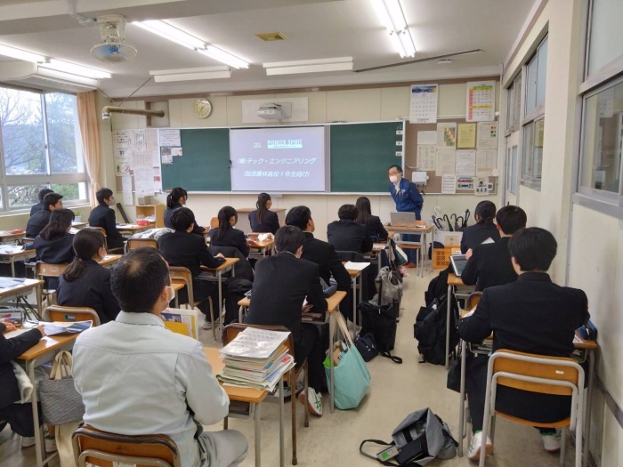本日、加茂農林高校での企業説明会に参加させて頂きました。 当社は1年生の2クラスに説明させて頂くことができました! 中には、キラキラした目で聞いてくれている生徒さんも居て、嬉しい限りです。 まだ1年生なので、来年の今頃にもう一度PRさせて頂く機会があると嬉しいところです。 こちらは、学校からお土産として頂きました、生徒さん達が作った「みそマドレーヌ」です!! 会社のみんなで頂きましたが、とても美味しかったです!! ありがとうございました。 そして、ご馳走様でした!